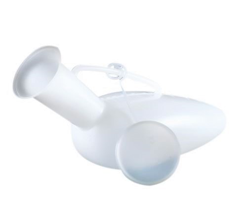 Urinol Masculino de plástico com pega e tampa. Recolha de líquidos biológicos.